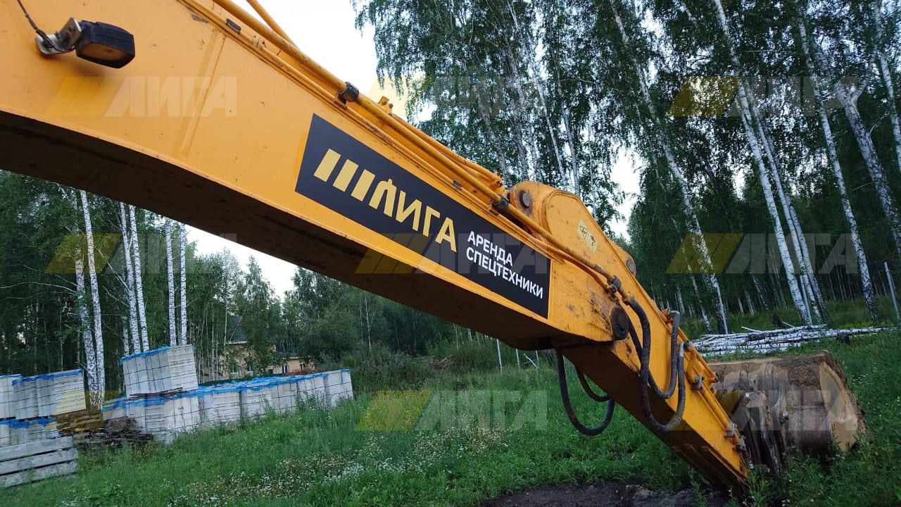 Экскаватор оснащен мощным двигателем около 147 кВт, что обеспечивает высокое усилие копания и быструю работу даже с плотными грунтами. Гидравлическая система обеспечивает плавное и точное управление.
